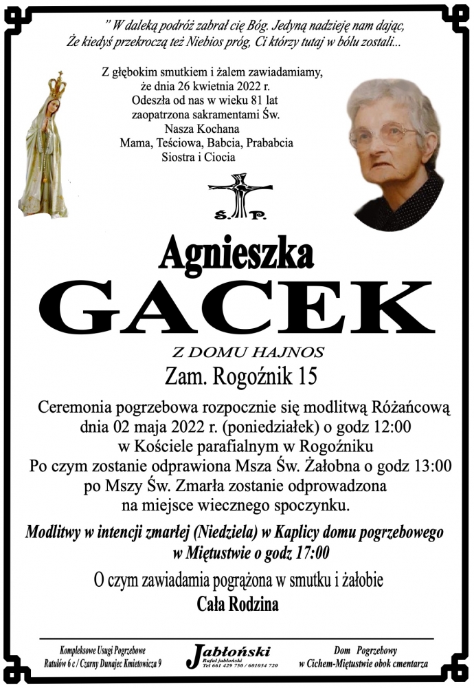 Agnieszka Gacek - Nekrologi - podhale24.pl