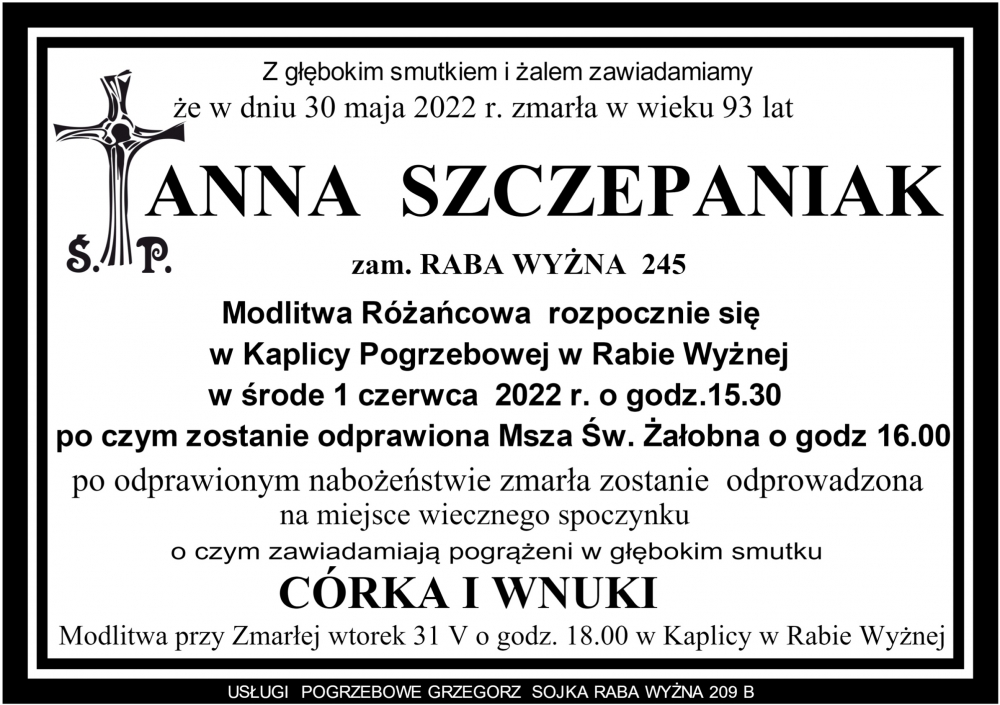 Anna Szczepaniak - Nekrologi - podhale24.pl