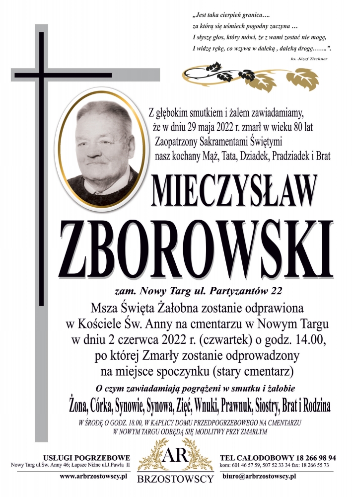 Mieczysław Zborowski - Nekrologi - podhale24.pl