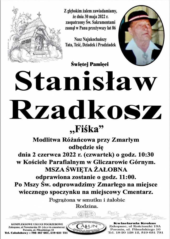 Stanisław Rzadkosz - Nekrologi - podhale24.pl