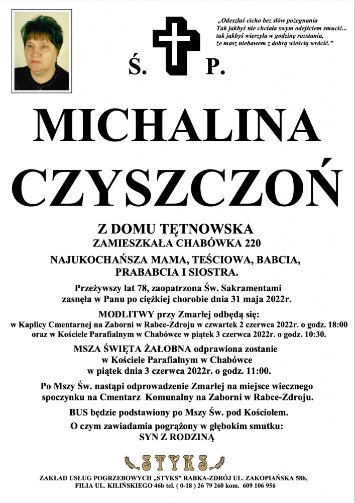 Michalina Czyszczoń - Nekrologi - podhale24.pl