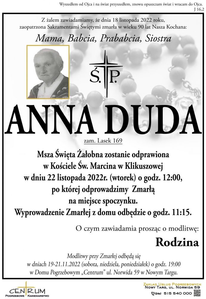 Podhale24.pl zastrzega sobie prawo do nie publikowania wspomnień, w szczególności tych nie związanych z profilem działu nekrologi, zawierających wulgaryzmy, wzywających do zachowań niezgodnych z prawem, obrażających osoby publiczne i prywatne, obrażających inne narodowości, rasy, religie itd, oraz te, bez możliwości telefonicznej lub mailowej weryfikacji ich autora.