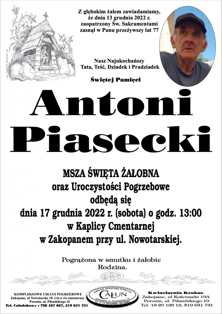 Antoni Piasecki - Nekrologi - podhale24.pl