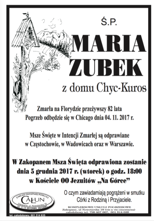 Podhale24.pl zastrzega sobie prawo do nie publikowania wspomnień, w szczególności tych nie związanych z profilem działu nekrologi, zawierających wulgaryzmy, wzywających do zachowań niezgodnych z prawem, obrażających osoby publiczne i prywatne, obrażających inne narodowości, rasy, religie itd, oraz te, bez możliwości telefonicznej lub mailowej weryfikacji ich autora.