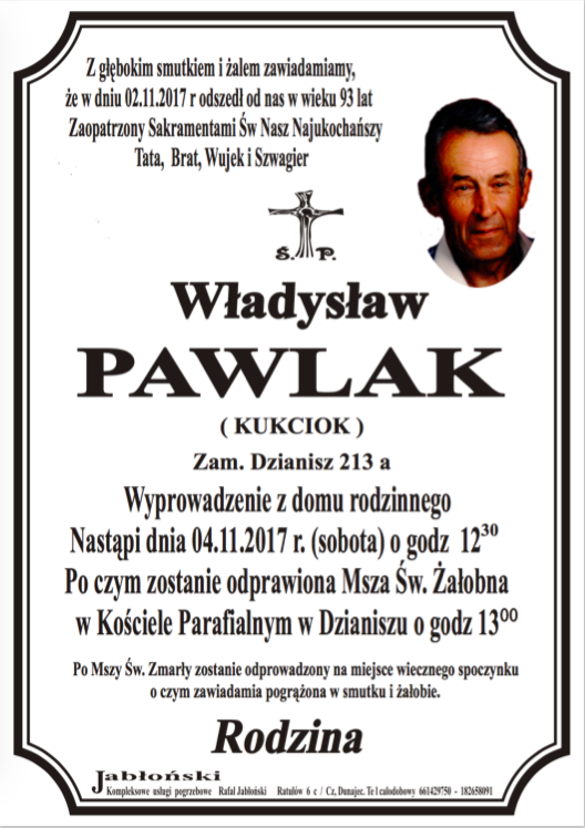 Władysław Pawlak - Nekrologi - podhale24.pl