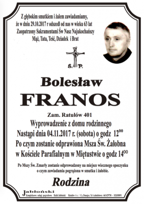 Podhale24.pl zastrzega sobie prawo do nie publikowania wspomnień, w szczególności tych nie związanych z profilem działu nekrologi, zawierających wulgaryzmy, wzywających do zachowań niezgodnych z prawem, obrażających osoby publiczne i prywatne, obrażających inne narodowości, rasy, religie itd, oraz te, bez możliwości telefonicznej lub mailowej weryfikacji ich autora.