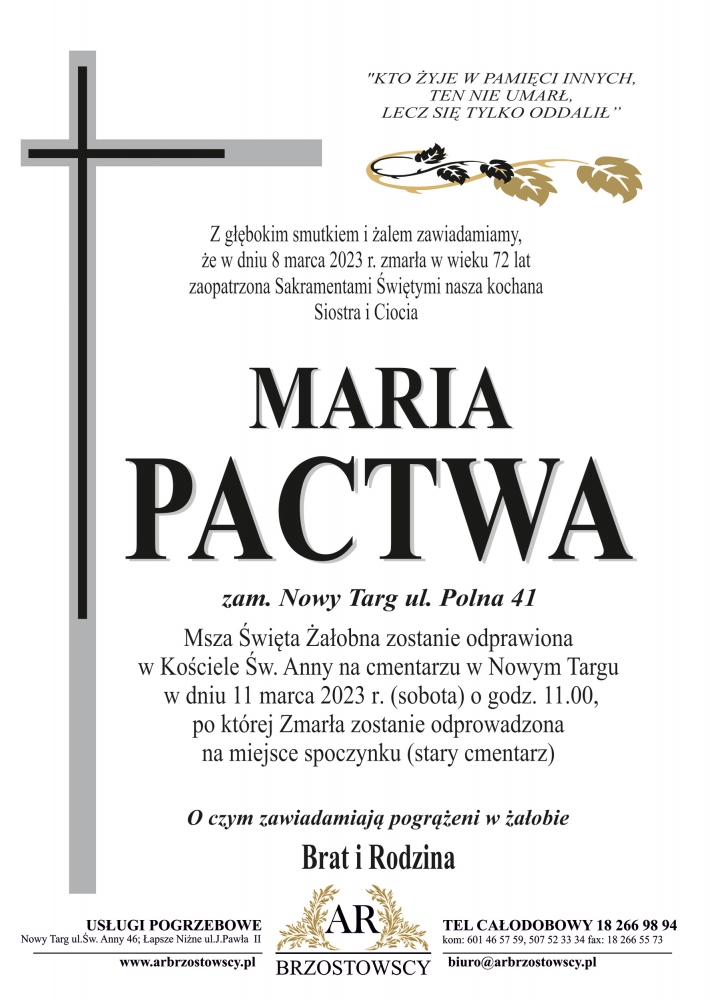 Podhale24.pl zastrzega sobie prawo do nie publikowania wspomnień, w szczególności tych nie związanych z profilem działu nekrologi, zawierających wulgaryzmy, wzywających do zachowań niezgodnych z prawem, obrażających osoby publiczne i prywatne, obrażających inne narodowości, rasy, religie itd, oraz te, bez możliwości telefonicznej lub mailowej weryfikacji ich autora.
