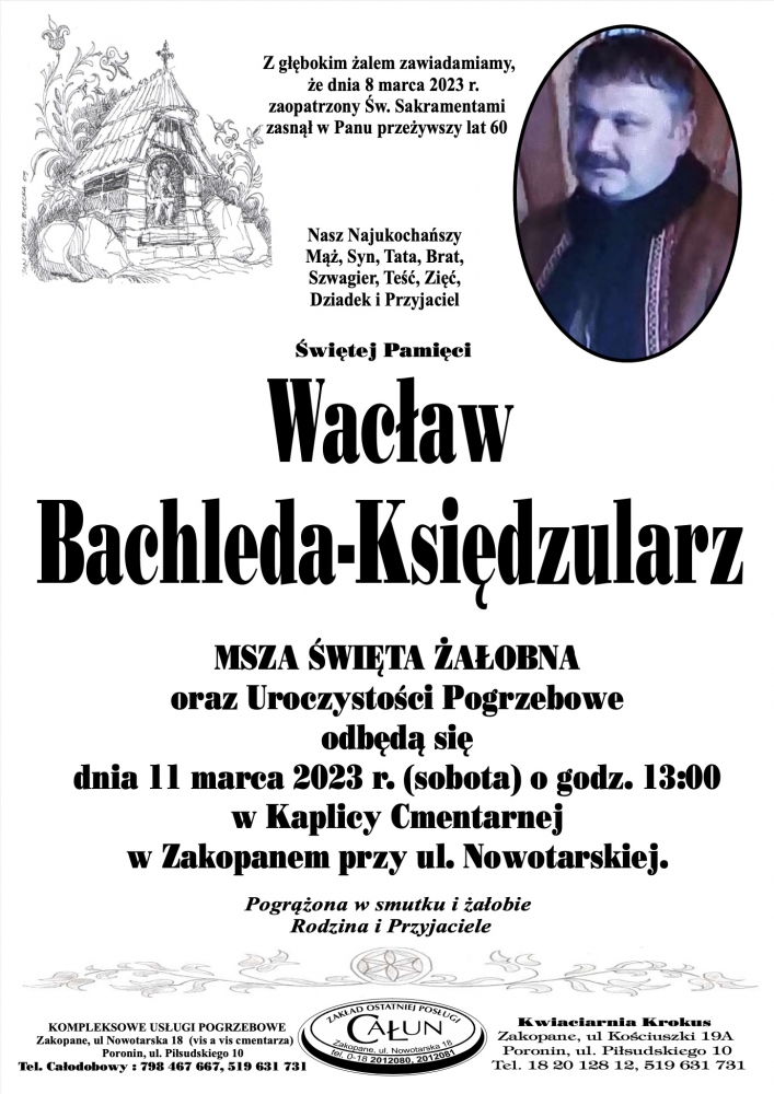 Wacław Bachleda-Księdzularz - Nekrologi - podhale24.pl