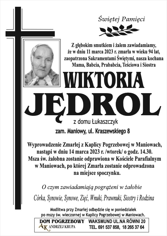 Wiktoria Jędrol - Nekrologi - podhale24.pl
