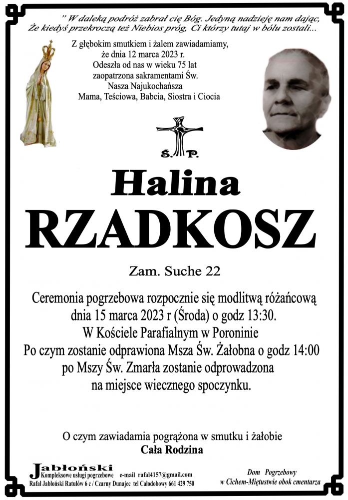 Halina Rzadkosz - Nekrologi - podhale24.pl