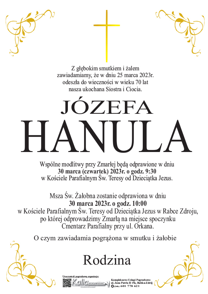 Józefa Hanula - Nekrologi - podhale24.pl