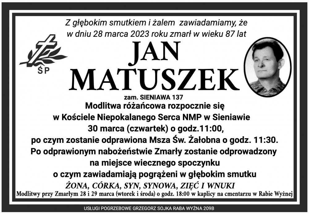 Podhale24.pl zastrzega sobie prawo do nie publikowania wspomnień, w szczególności tych nie związanych z profilem działu nekrologi, zawierających wulgaryzmy, wzywających do zachowań niezgodnych z prawem, obrażających osoby publiczne i prywatne, obrażających inne narodowości, rasy, religie itd, oraz te, bez możliwości telefonicznej lub mailowej weryfikacji ich autora.