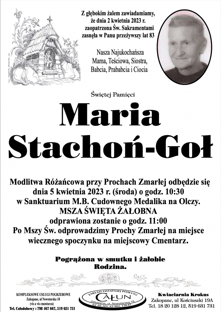 Maria Stachoń-Goł - Nekrologi - podhale24.pl