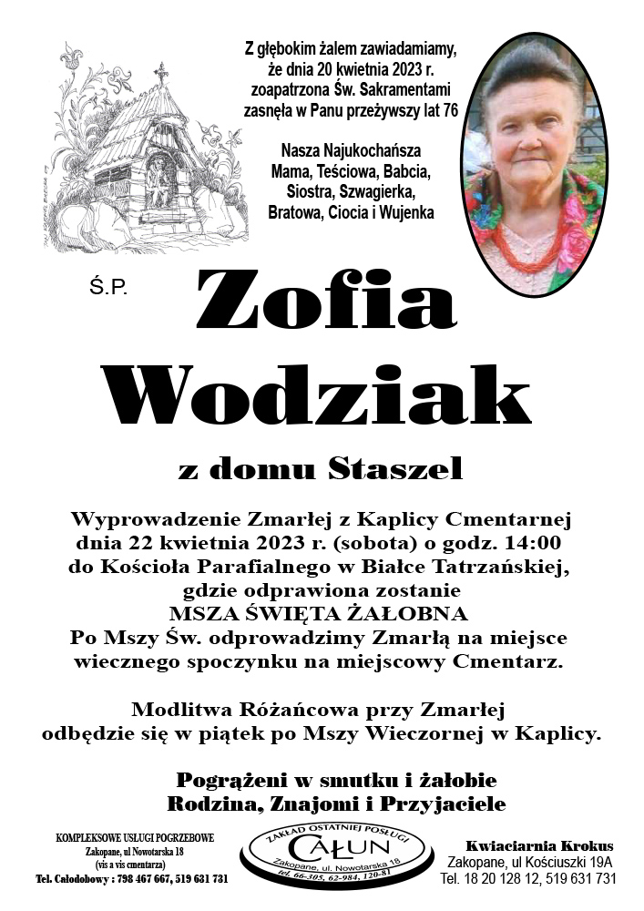 Zofia Wodziak - Nekrologi - podhale24.pl