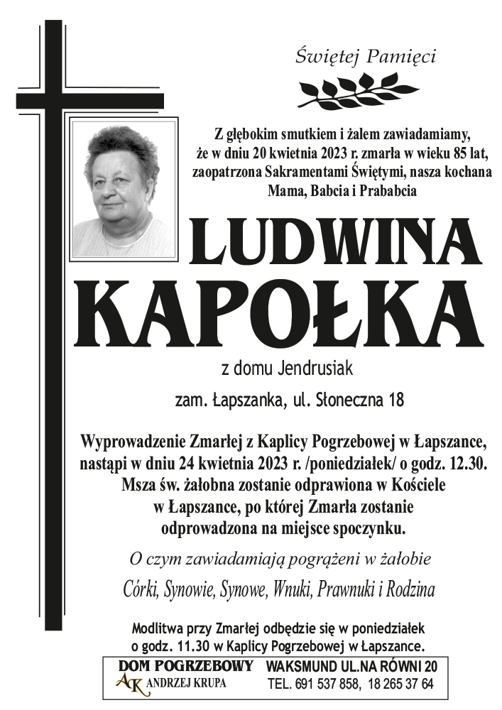 Ludwina Kapołka - Nekrologi - podhale24.pl