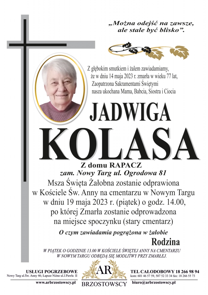 Jadwiga Kolasa - Nekrologi - podhale24.pl