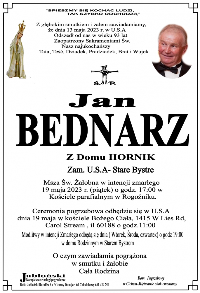 Jan Bednarz - Nekrologi - podhale24.pl