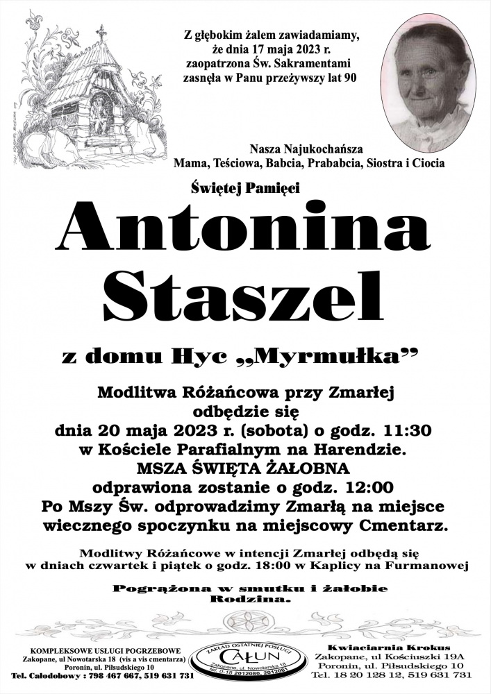 Antonina Staszel - Nekrologi - podhale24.pl