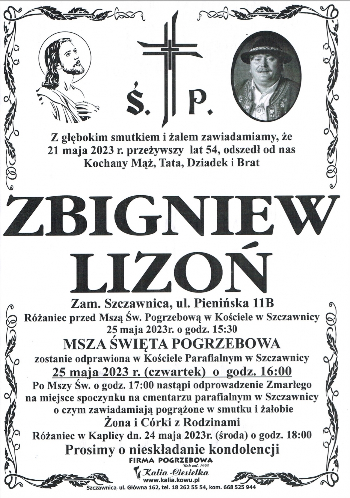 Zbigniew Lizoń - Nekrologi - podhale24.pl