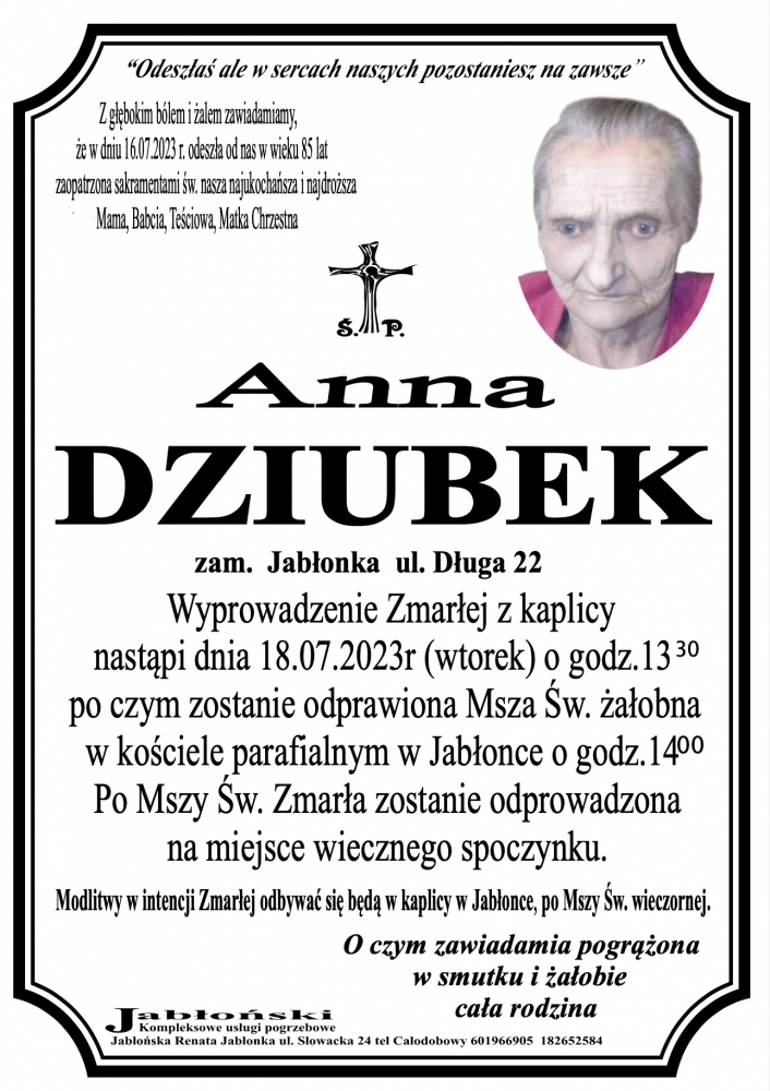 Anna Dziubek - Nekrologi - podhale24.pl
