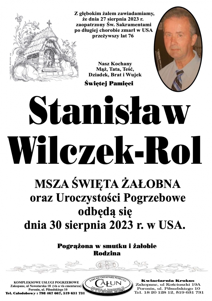 Stanisław Wilczek-Rol - Nekrologi - podhale24.pl