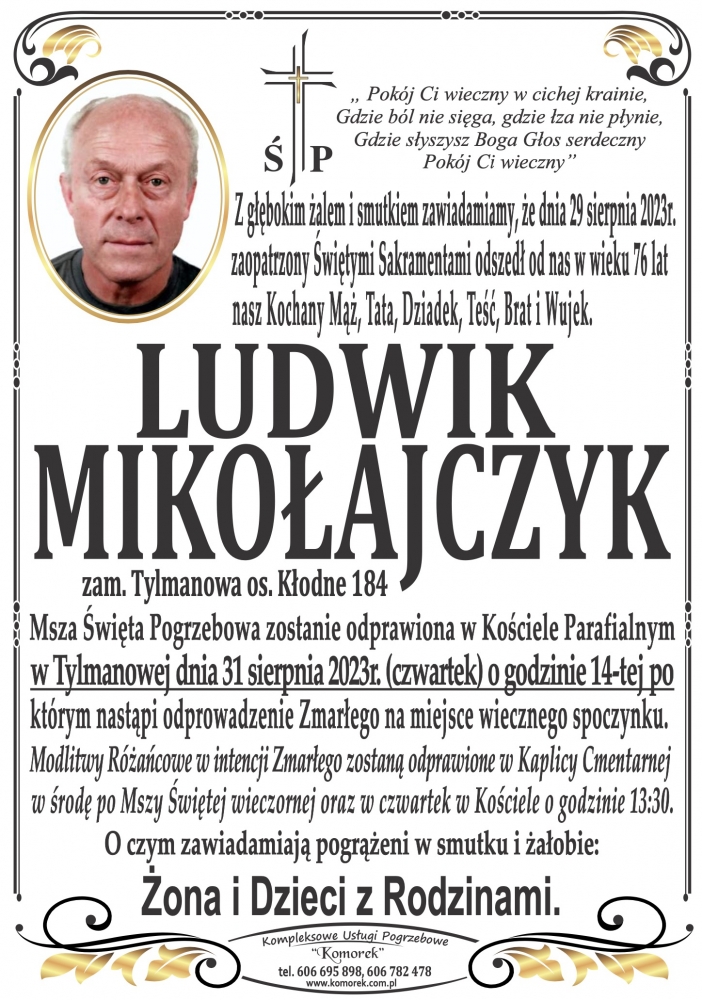 Ludwik Mikołajczyk - Nekrologi - podhale24.pl