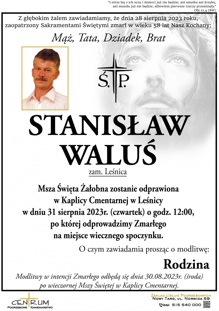 Stanisław Waluś - Nekrologi - podhale24.pl