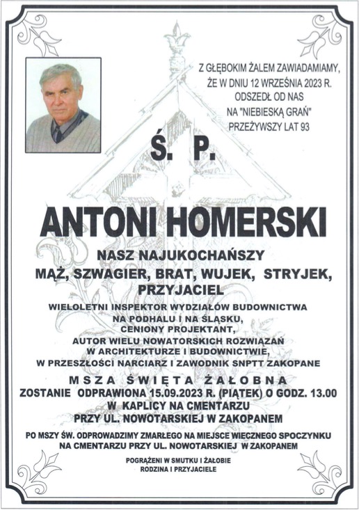 Antoni Homerski - Nekrologi - podhale24.pl