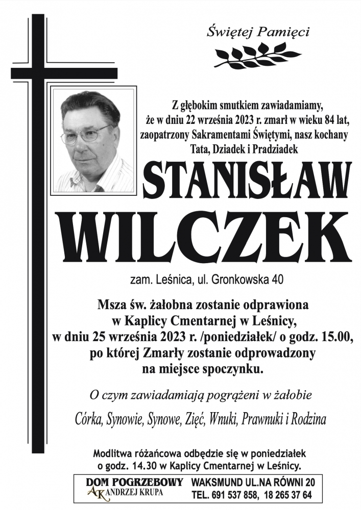 Stanisław Wilczek - Nekrologi - podhale24.pl
