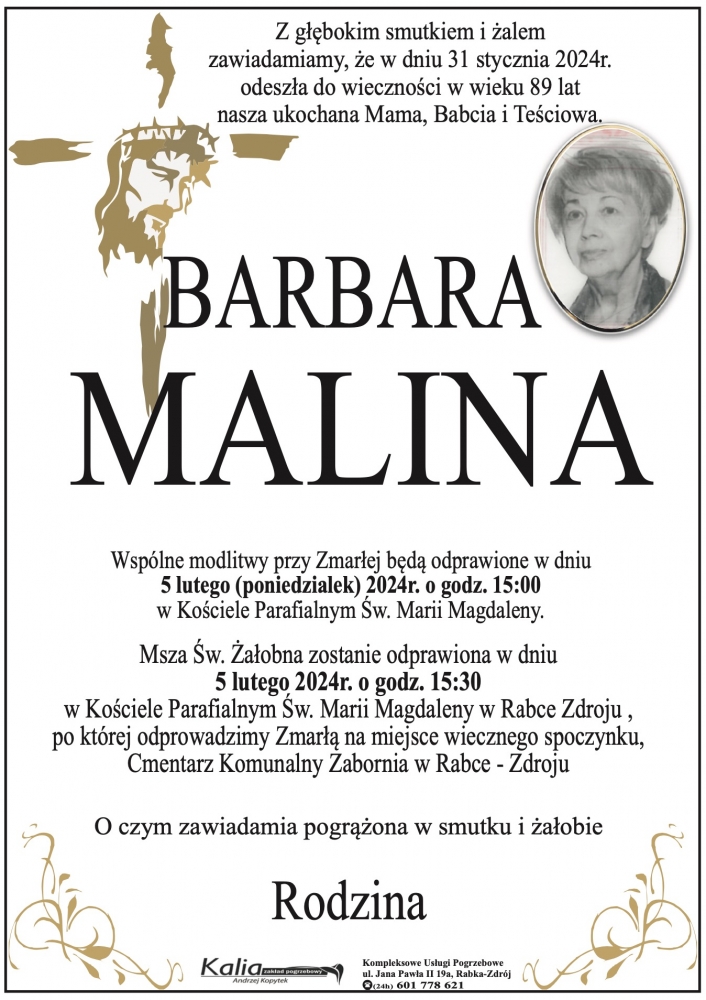 Barbara Malina - Nekrologi - podhale24.pl