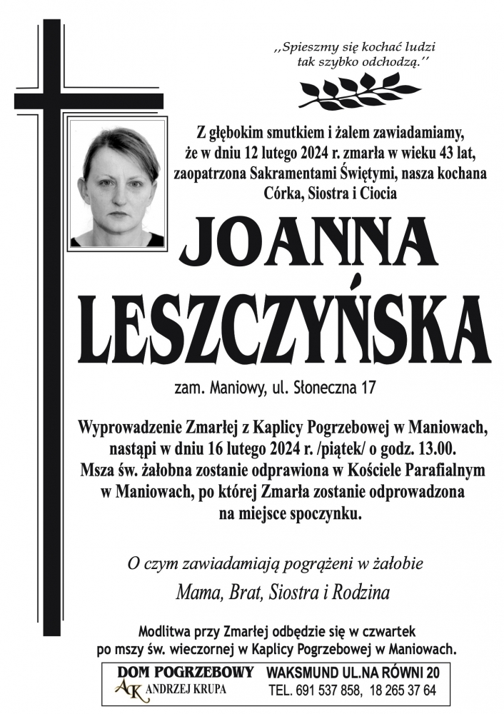 Joanna Leszczyńska - Nekrologi - podhale24.pl