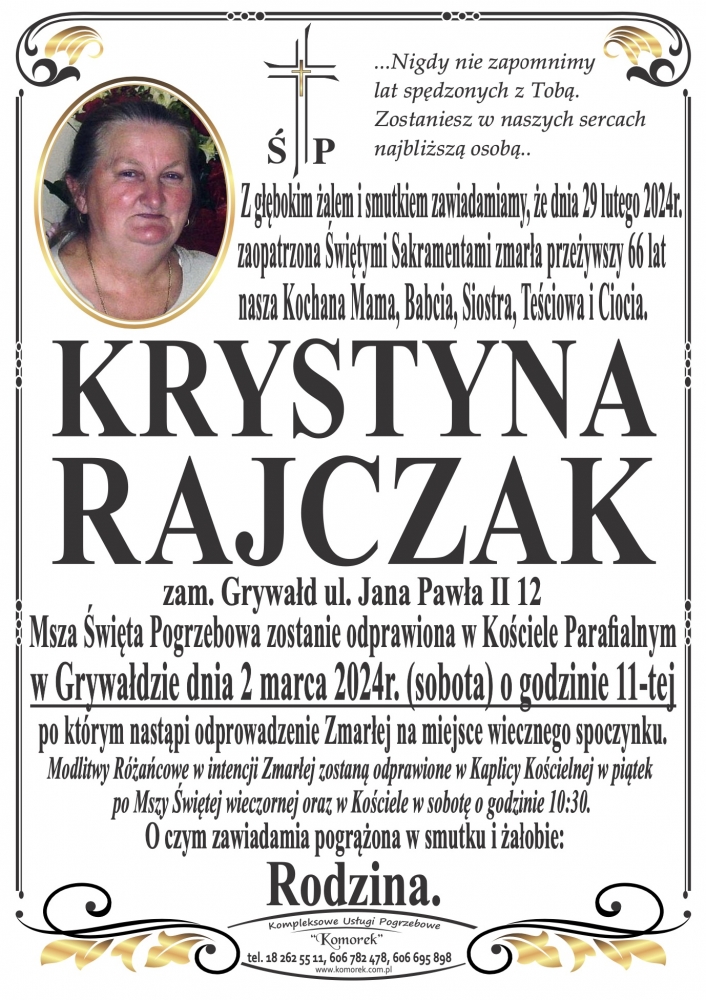 Krystyna Rajczak - Nekrologi - podhale24.pl
