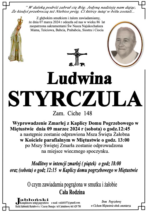 Ludwina Styrczula - Nekrologi - podhale24.pl