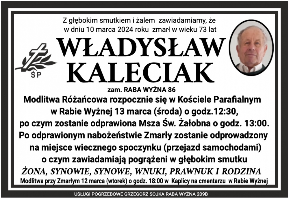 Władysław Kaleciak - Nekrologi - podhale24.pl
