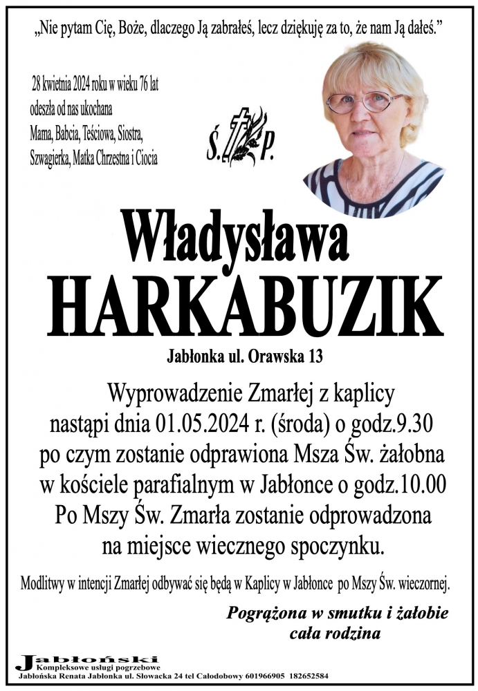 Władysława Harkabuzik - Nekrologi - podhale24.pl