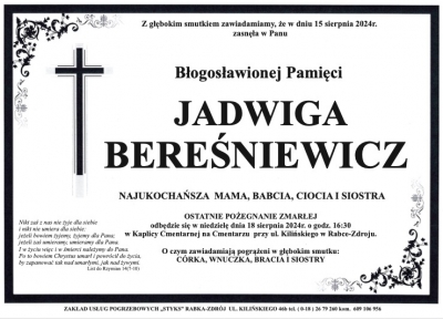 Podhale24.pl zastrzega sobie prawo do nie publikowania wspomnień, w szczególności tych nie związanych z profilem działu nekrologi, zawierających wulgaryzmy, wzywających do zachowań niezgodnych z prawem, obrażających osoby publiczne i prywatne, obrażających inne narodowości, rasy, religie itd, oraz te, bez możliwości telefonicznej lub mailowej weryfikacji ich autora.