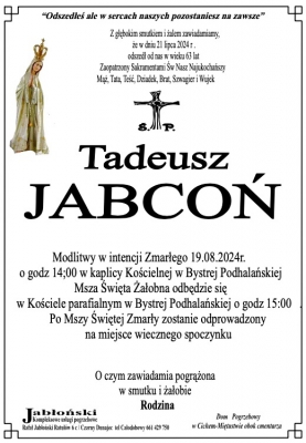Podhale24.pl zastrzega sobie prawo do nie publikowania wspomnień, w szczególności tych nie związanych z profilem działu nekrologi, zawierających wulgaryzmy, wzywających do zachowań niezgodnych z prawem, obrażających osoby publiczne i prywatne, obrażających inne narodowości, rasy, religie itd, oraz te, bez możliwości telefonicznej lub mailowej weryfikacji ich autora.