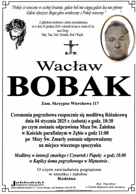Podhale24.pl zastrzega sobie prawo do nie publikowania wspomnień, w szczególności tych nie związanych z profilem działu nekrologi, zawierających wulgaryzmy, wzywających do zachowań niezgodnych z prawem, obrażających osoby publiczne i prywatne, obrażających inne narodowości, rasy, religie itd, oraz te, bez możliwości telefonicznej lub mailowej weryfikacji ich autora.