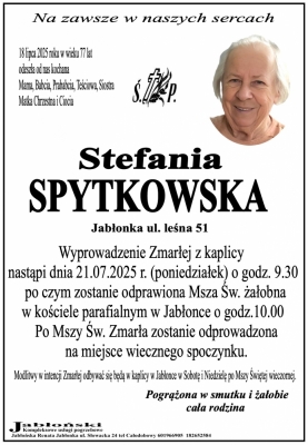 Podhale24.pl zastrzega sobie prawo do nie publikowania wspomnień, w szczególności tych nie związanych z profilem działu nekrologi, zawierających wulgaryzmy, wzywających do zachowań niezgodnych z prawem, obrażających osoby publiczne i prywatne, obrażających inne narodowości, rasy, religie itd, oraz te, bez możliwości telefonicznej lub mailowej weryfikacji ich autora.