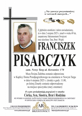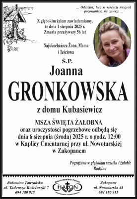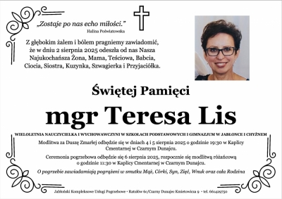 Podhale24.pl zastrzega sobie prawo do nie publikowania wspomnień, w szczególności tych nie związanych z profilem działu nekrologi, zawierających wulgaryzmy, wzywających do zachowań niezgodnych z prawem, obrażających osoby publiczne i prywatne, obrażających inne narodowości, rasy, religie itd, oraz te, bez możliwości telefonicznej lub mailowej weryfikacji ich autora.