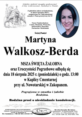 Podhale24.pl zastrzega sobie prawo do nie publikowania wspomnień, w szczególności tych nie związanych z profilem działu nekrologi, zawierających wulgaryzmy, wzywających do zachowań niezgodnych z prawem, obrażających osoby publiczne i prywatne, obrażających inne narodowości, rasy, religie itd, oraz te, bez możliwości telefonicznej lub mailowej weryfikacji ich autora.