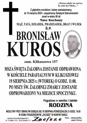 Podhale24.pl zastrzega sobie prawo do nie publikowania wspomnień, w szczególności tych nie związanych z profilem działu nekrologi, zawierających wulgaryzmy, wzywających do zachowań niezgodnych z prawem, obrażających osoby publiczne i prywatne, obrażających inne narodowości, rasy, religie itd, oraz te, bez możliwości telefonicznej lub mailowej weryfikacji ich autora.