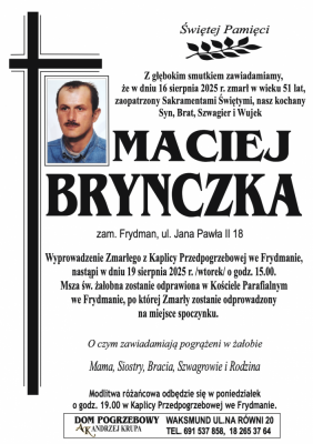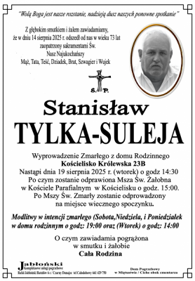 Podhale24.pl zastrzega sobie prawo do nie publikowania wspomnień, w szczególności tych nie związanych z profilem działu nekrologi, zawierających wulgaryzmy, wzywających do zachowań niezgodnych z prawem, obrażających osoby publiczne i prywatne, obrażających inne narodowości, rasy, religie itd, oraz te, bez możliwości telefonicznej lub mailowej weryfikacji ich autora.