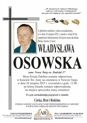 Podhale24.pl zastrzega sobie prawo do nie publikowania wspomnień, w szczególności tych nie związanych z profilem działu nekrologi, zawierających wulgaryzmy, wzywających do zachowań niezgodnych z prawem, obrażających osoby publiczne i prywatne, obrażających inne narodowości, rasy, religie itd, oraz te, bez możliwości telefonicznej lub mailowej weryfikacji ich autora.