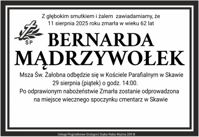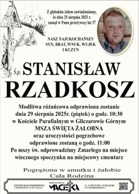 Podhale24.pl zastrzega sobie prawo do nie publikowania wspomnień, w szczególności tych nie związanych z profilem działu nekrologi, zawierających wulgaryzmy, wzywających do zachowań niezgodnych z prawem, obrażających osoby publiczne i prywatne, obrażających inne narodowości, rasy, religie itd, oraz te, bez możliwości telefonicznej lub mailowej weryfikacji ich autora.