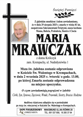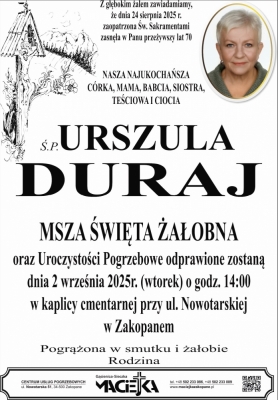 Podhale24.pl zastrzega sobie prawo do nie publikowania wspomnień, w szczególności tych nie związanych z profilem działu nekrologi, zawierających wulgaryzmy, wzywających do zachowań niezgodnych z prawem, obrażających osoby publiczne i prywatne, obrażających inne narodowości, rasy, religie itd, oraz te, bez możliwości telefonicznej lub mailowej weryfikacji ich autora.