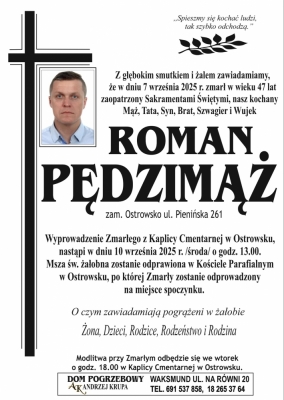 Podhale24.pl zastrzega sobie prawo do nie publikowania wspomnień, w szczególności tych nie związanych z profilem działu nekrologi, zawierających wulgaryzmy, wzywających do zachowań niezgodnych z prawem, obrażających osoby publiczne i prywatne, obrażających inne narodowości, rasy, religie itd, oraz te, bez możliwości telefonicznej lub mailowej weryfikacji ich autora.