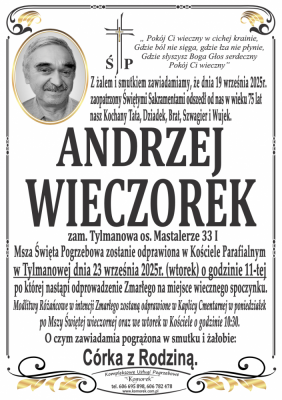 Podhale24.pl zastrzega sobie prawo do nie publikowania wspomnień, w szczególności tych nie związanych z profilem działu nekrologi, zawierających wulgaryzmy, wzywających do zachowań niezgodnych z prawem, obrażających osoby publiczne i prywatne, obrażających inne narodowości, rasy, religie itd, oraz te, bez możliwości telefonicznej lub mailowej weryfikacji ich autora.