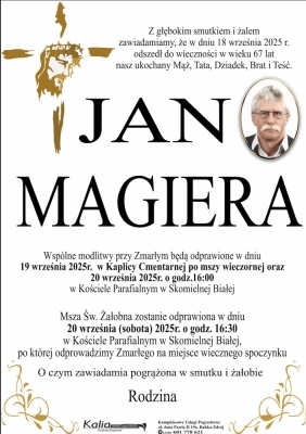 Podhale24.pl zastrzega sobie prawo do nie publikowania wspomnień, w szczególności tych nie związanych z profilem działu nekrologi, zawierających wulgaryzmy, wzywających do zachowań niezgodnych z prawem, obrażających osoby publiczne i prywatne, obrażających inne narodowości, rasy, religie itd, oraz te, bez możliwości telefonicznej lub mailowej weryfikacji ich autora.
