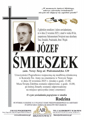 Podhale24.pl zastrzega sobie prawo do nie publikowania wspomnień, w szczególności tych nie związanych z profilem działu nekrologi, zawierających wulgaryzmy, wzywających do zachowań niezgodnych z prawem, obrażających osoby publiczne i prywatne, obrażających inne narodowości, rasy, religie itd, oraz te, bez możliwości telefonicznej lub mailowej weryfikacji ich autora.